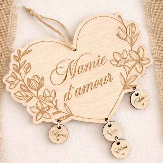 Cœur en bois personnalisé avec prénoms – Suspension famille